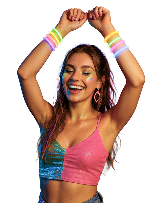Uključeno: 35 fosforescentnih cijevi , 25 kopči , 10 ručki za naočale , 5 kopči za sredinu naočala , 5 slamki