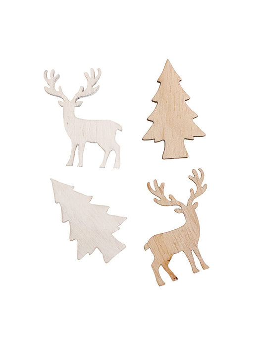 Rasprodano24 Confettis u prirodnom drvetu i bijelim sapinima i jelenima 3,5 cm