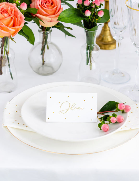 10 bijelih kartona s zlatnim polka točkicama 9,5 x 5,5 cm