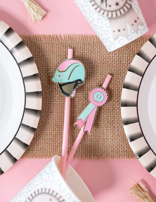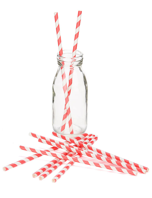 Promocija10 pailles en carton rayées blanches et menthe 19,5 cm pour fête