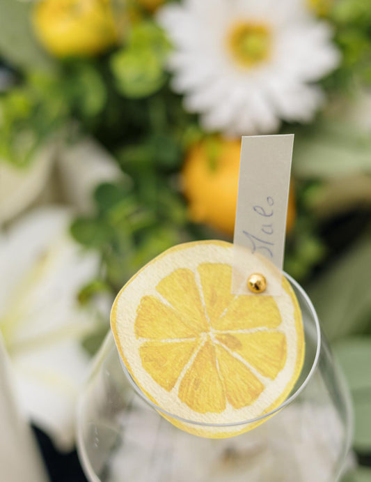 10 žutih papirnatih kartica za mjesto u obliku kriški limuna