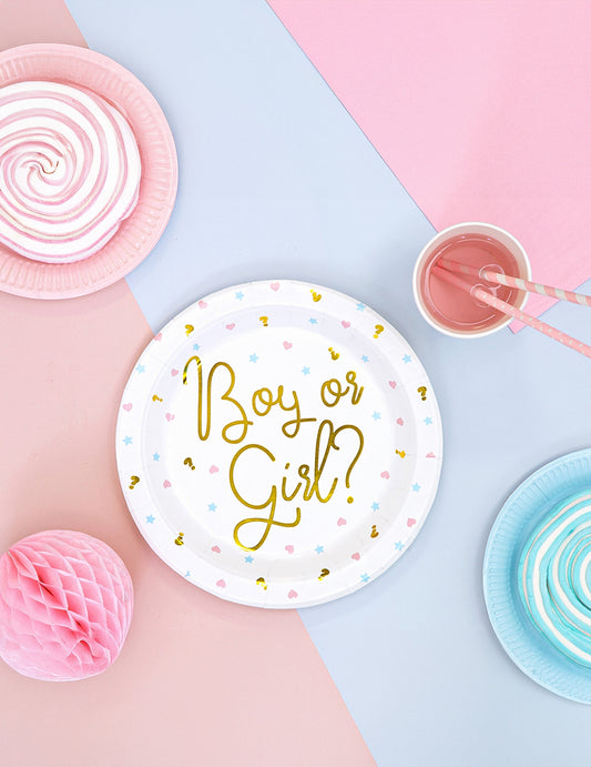 6 bijelih kartonskih tanjura za dječake ili djevojčice 23 cm baby shower