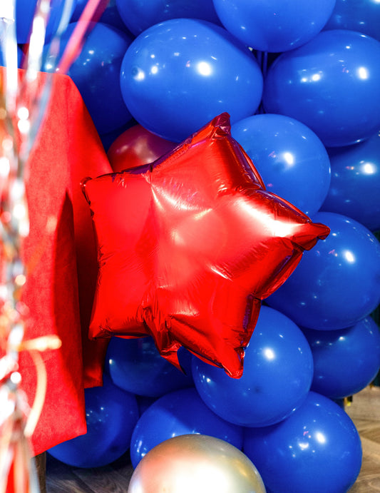 Uključeno: 2 balona zvijezde, 2 okrugla balona, 1 balon bubamara