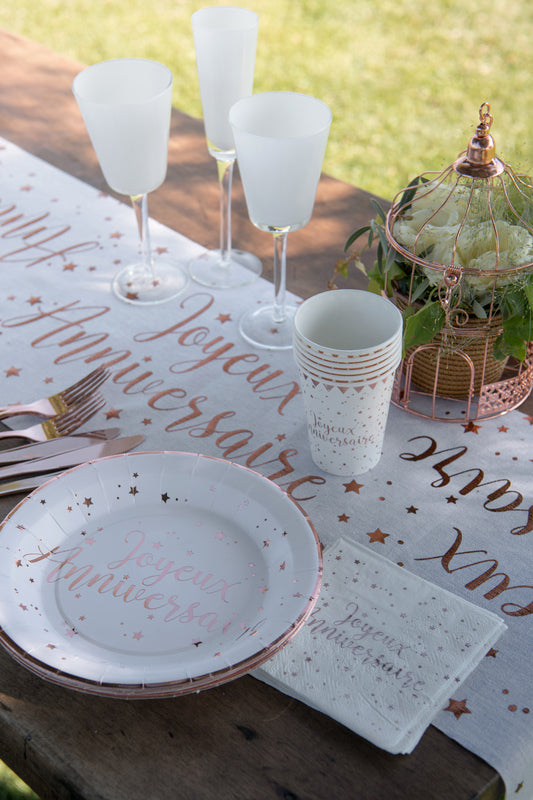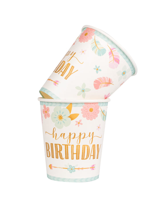 8 bijelih i ružičastih papirnatih čaša s točkicama za sretan rođendan, 266 ml
