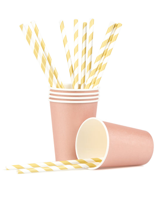 8 Kartonske šalice djevojke ili plave i zlatno ružičaste ružičaste 255 ml