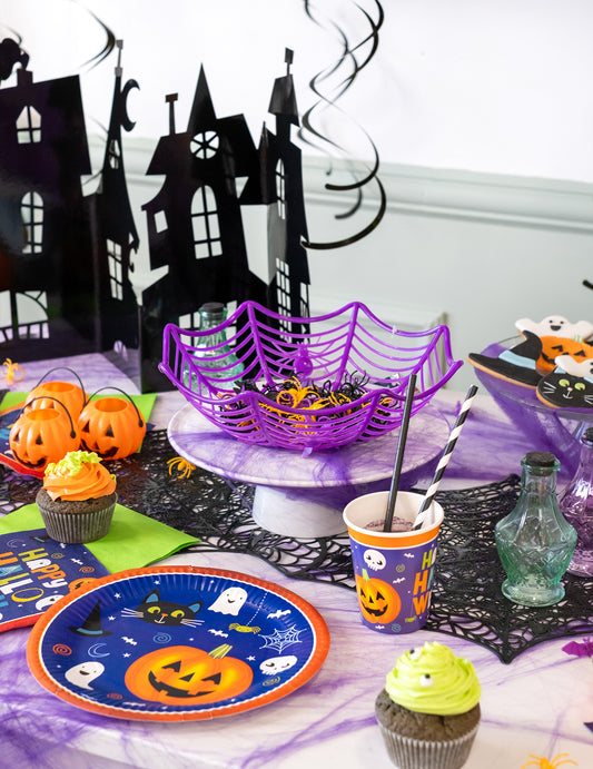- Posuđe za jednokratnu upotrebu ukrašeno lubanjama, duhovima ili vampirima, savršeno za jednostavno čišćenje nakon zabave.