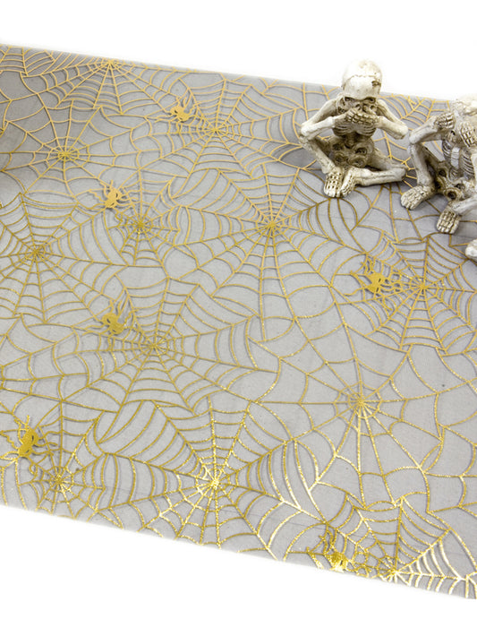RasprodanoCrni organza nadstolnjak sa zlatnim uzorkom paukove mreže 29 cm x 5m šik Noć vještica