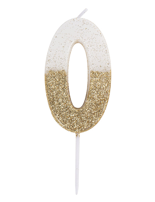 Bijelo-zlatna svjetlucava svijeća s brojem 7 na štapiću cm za rođendan