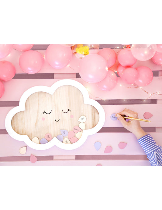 Drvena knjiga gostiju u obliku oblaka, 43 x 30 cm s 30 kapi