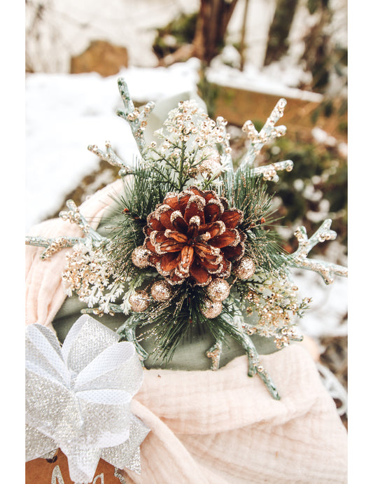 RasprodanoSredišnji ukras za stol pahulja prirodna sa šampanjac šljokicama 19,5 cm