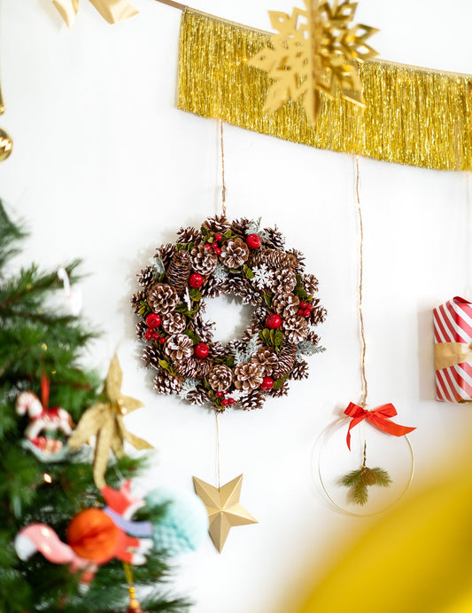RasprodajaDekoracija za objesiti zlatne jelene i borove konusi od 35 cm