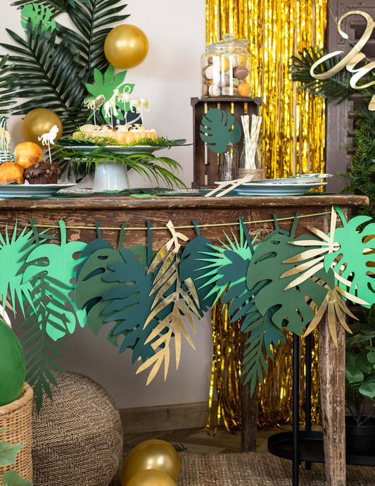 Karton Garland Zlatni tropski listovi i degradirani od zelenih 2 m