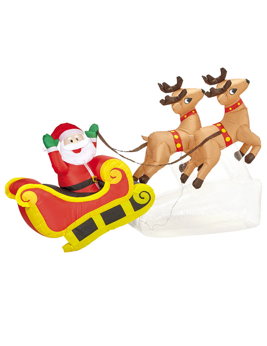 Osvijetljena napuhavajuća dekoracija saonicama Djeda Božićnjaka 210 cm