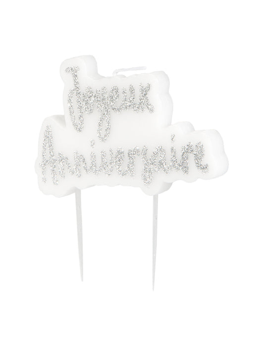 Svijeća na sretnom srebrnom rođendanu pabulée 8 x 5 cm svileni rođendan