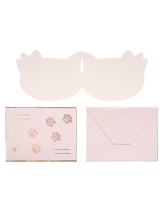 Rasprodano6 pozivnica s ružičastim omotnicama s mačićima za rođendan
