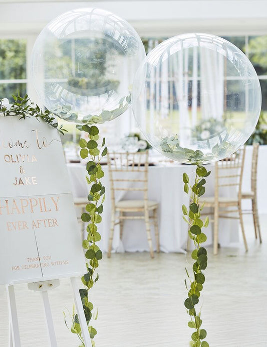 RasprodanoProzirni balon s girlandom od lišća 90 cm vjenčanje u prirodi
