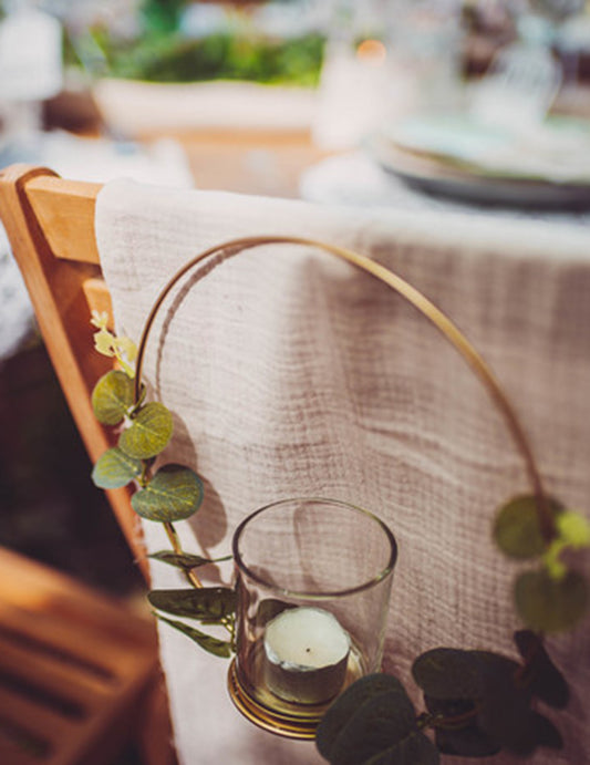 RasprodanoMetalni svijećnjak, dizajn eukaliptusa na zlatnom rubu 22 cm objesiti