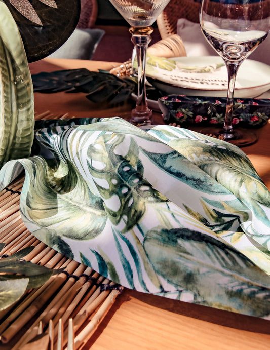 RasprodanoLuksuzni stolnjak s tropskim lišćem 28 cm x 5 m za vjenčanje