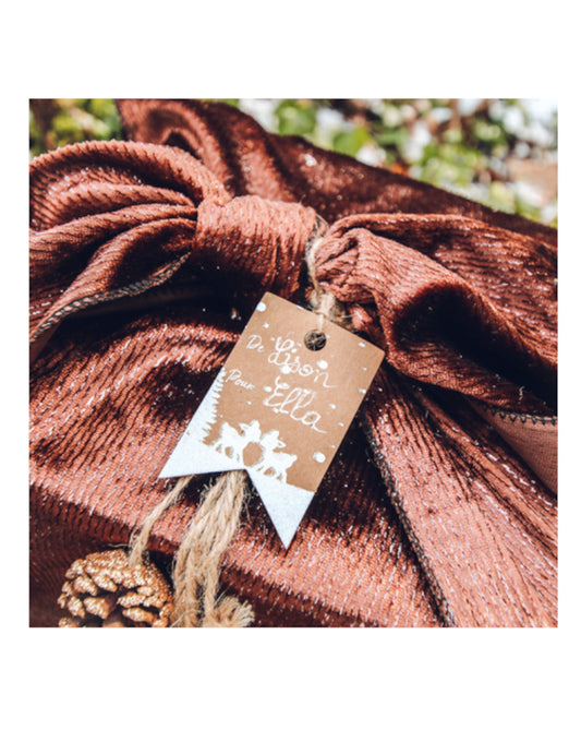 Rasprodano8 etiketa Sretan Božić s natpisom "Začarana šuma", 4 x 6 cm, s vrpcom