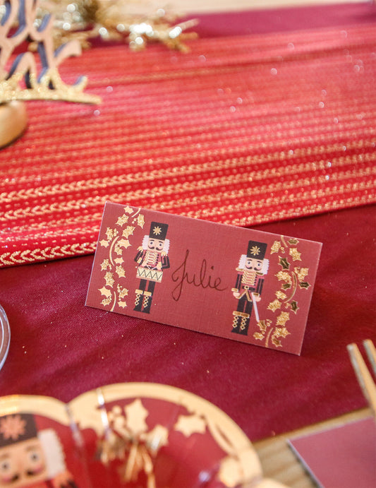 Rasprodano8 svečanih kartica s mjestima Krcka Orašara u bordo i zlatnoj boji, 8 x 4 cm