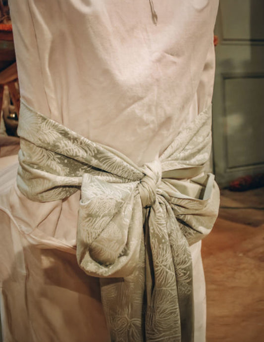 RasprodanoStolnjak od sužene jute s dvostrukim zlatnim šljokicama u obrubu 30 cm x 3 m za vjenčanje