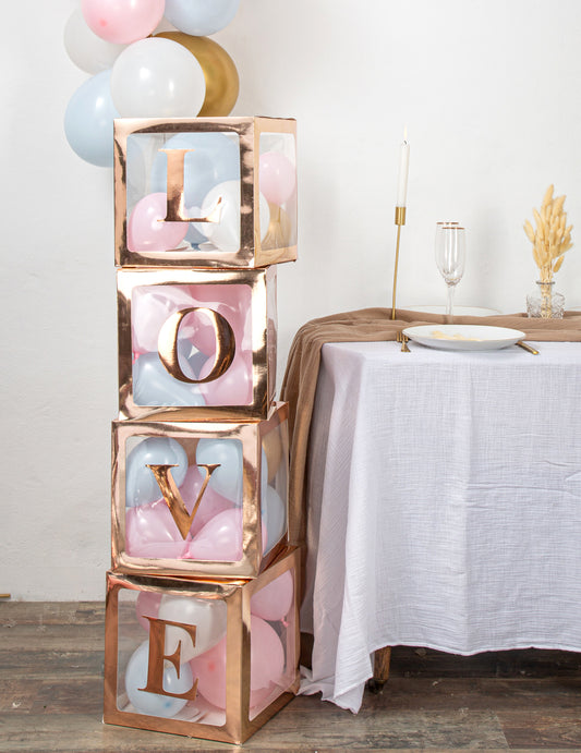 4 cubes à ballons en carton love 30 cm pour décoration romantique
