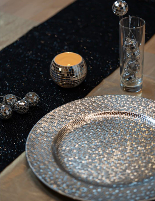 - Stolnjak i podmetači: Odlučite se za sjajne ili svjetlucave materijale koji reflektiraju svjetlost za svečanu atmosferu.