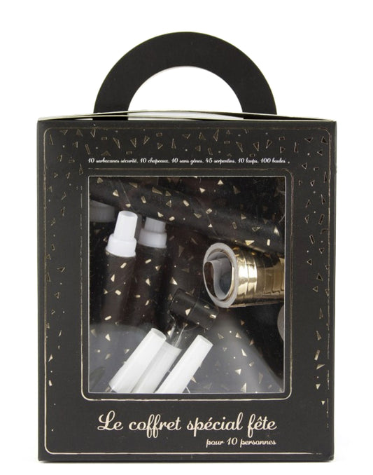 Kutija s party priborom za Novu godinu za 10 osoba crno-zlatna