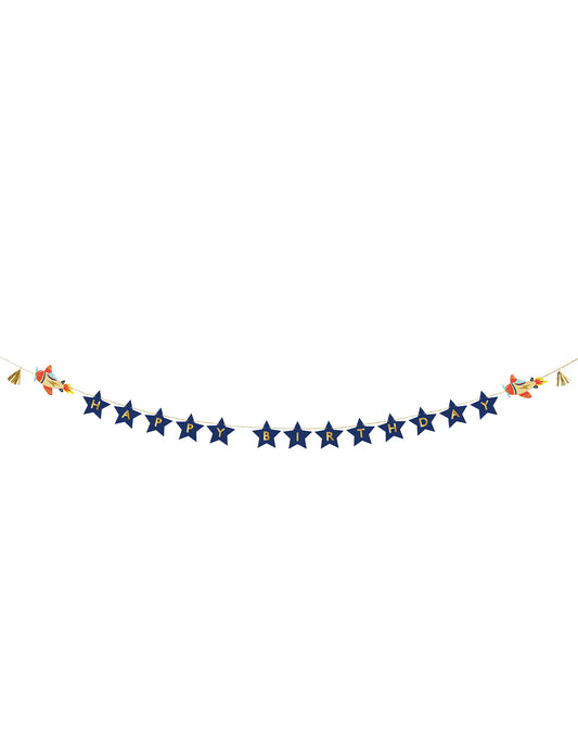 RasprodanoGirlanda za sretan rođendan, mali avion, 2,5 m, plava i zlatna