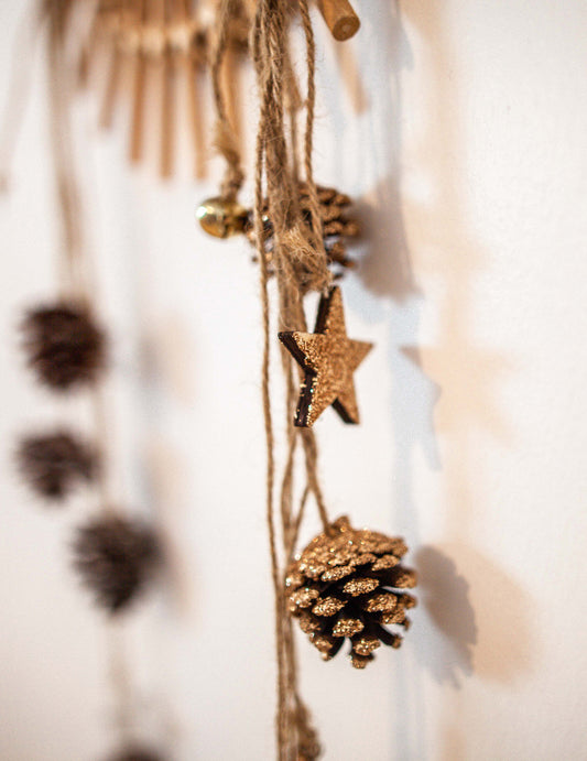 PromocijaViseća svjetiljka od bakrenog šljokica s borovim češerom 50 cm i drvene zvijezde