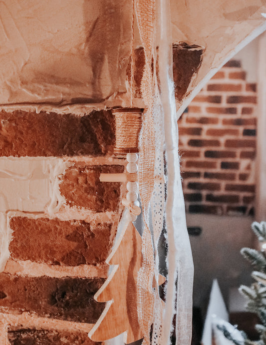 PromocijaViseći ukras od drva, jele, jute i čipke, 90 cm, stil planinske kuće