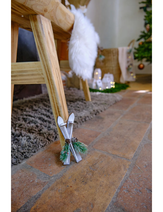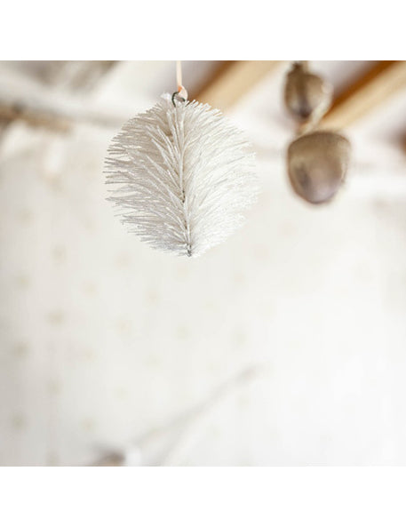 RasprodanoBožićna kugla od bijelog krzna i drveta 8 cm Skandinavski stil