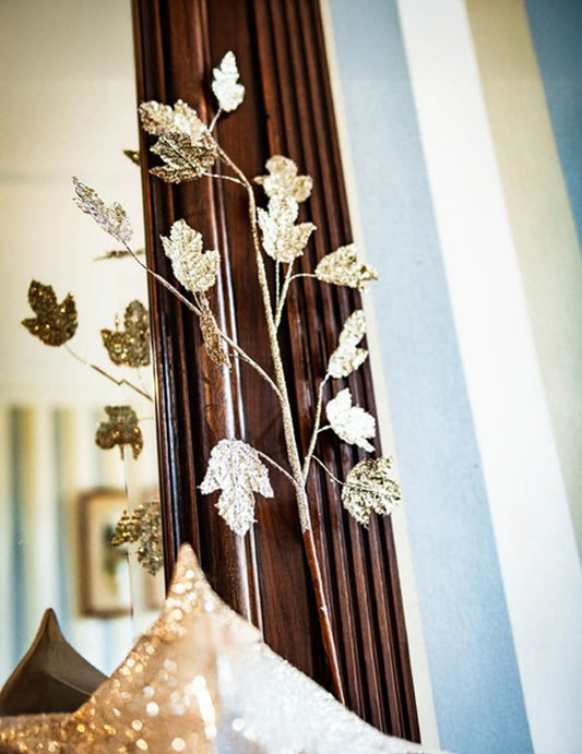 RasprodanoGrana javorovog lista s glitterom od šampanjca 75 cm i šljokice