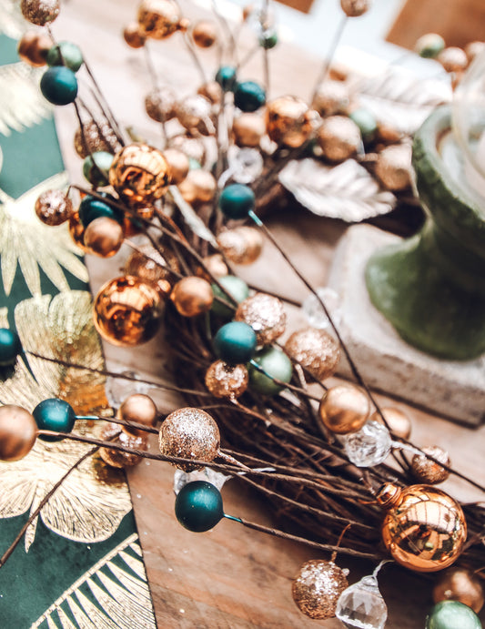 RasprodanoDekorativni vijenac s grančicama i svjetlucavim kuglicama 40 cm zlatni