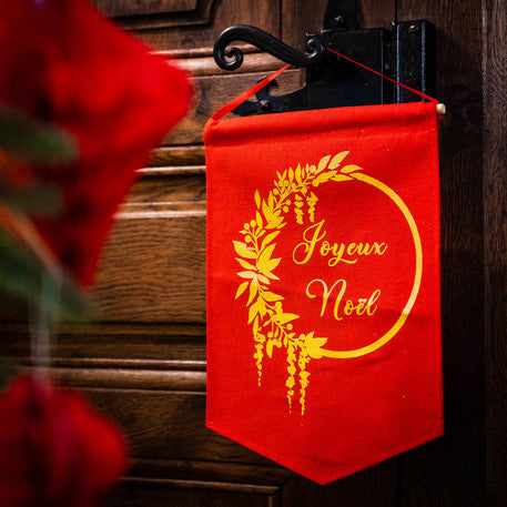RasprodanoBožićni viseći ukras od lana, crveni sa zlatnim flokovima, 20 x 30 cm cm dekorativni