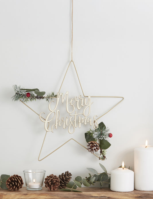RasprodanoZlatni viseći metalni ukras Sretan Božić zvijezda 32 cm Ukrašavanje božićnog drvca