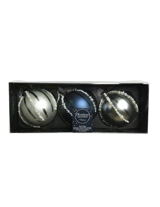 Rasprodano3 tamnoplave i srebrne staklene božićne kuglice s 8 perlica cm biserni efekt