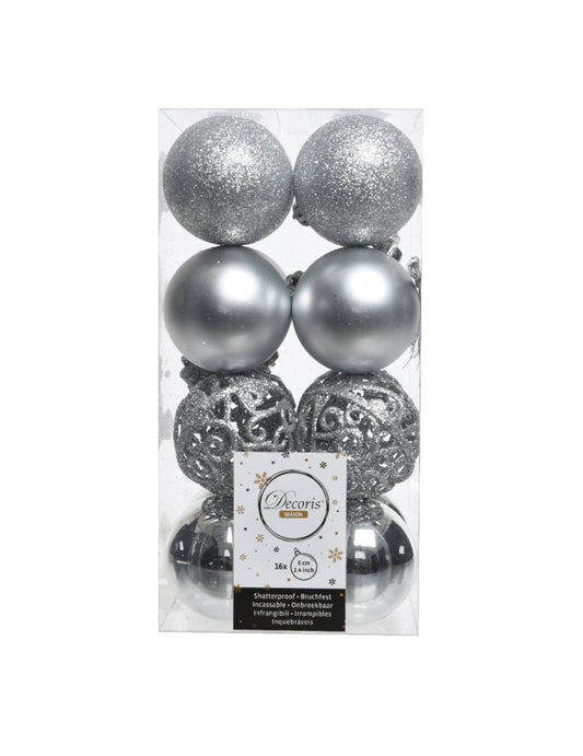 Rasprodano16 malih srebrnih božićnih kuglica 6 cm s različitim efektima