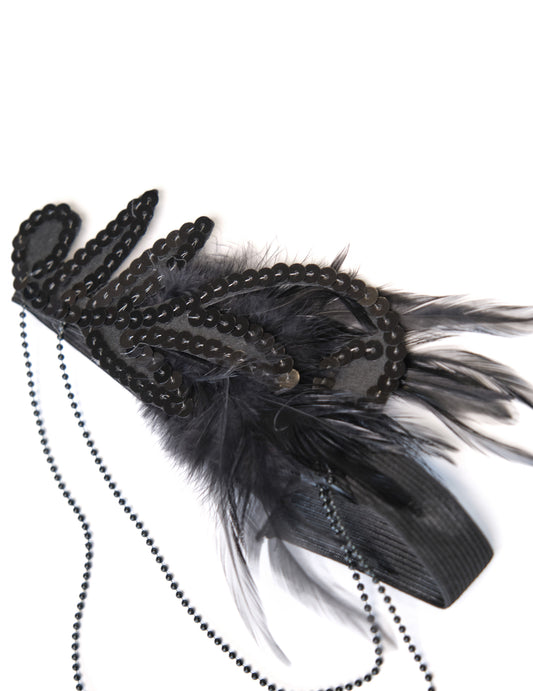 Crni Charleston traka za glavu s odraslim perjem