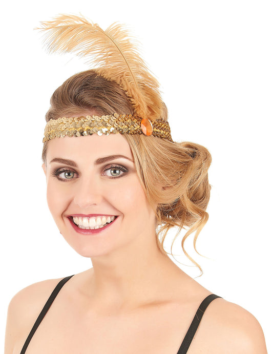 Charleston transparent sa šljokicama i pozlaćenim ženskim perjem