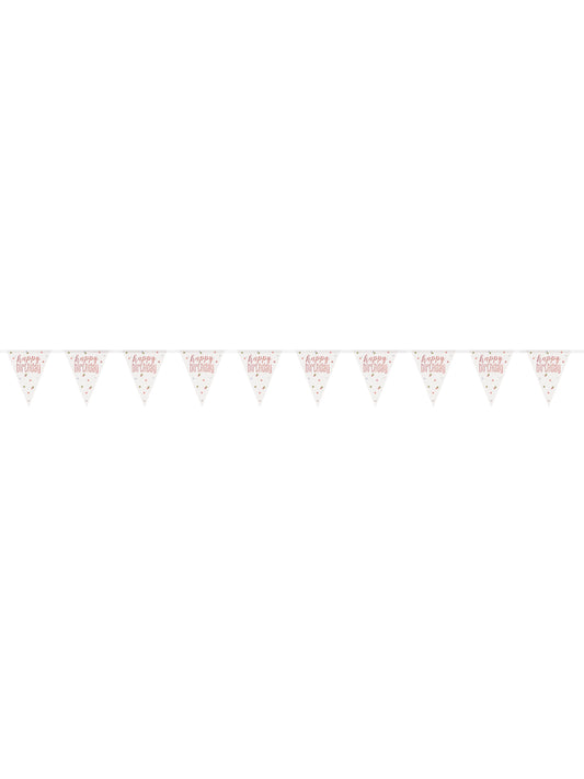 Girlanda od ružičaste i bijele kartonske zastavice 18 x 210 cm sa zlatnim uzorcima
