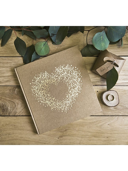 Knjiga gostiju od kraft papira sa zlatnim srcem, 22 stranice, kvadratni format