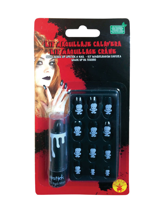 Komplet ruža za usne i lažni nokti za lubanje za odrasle
