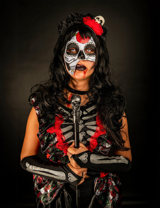 RasprodanoKomplet za šminkanje glamura s lažnim trepavicama i nakitom Dia de los Muertos
