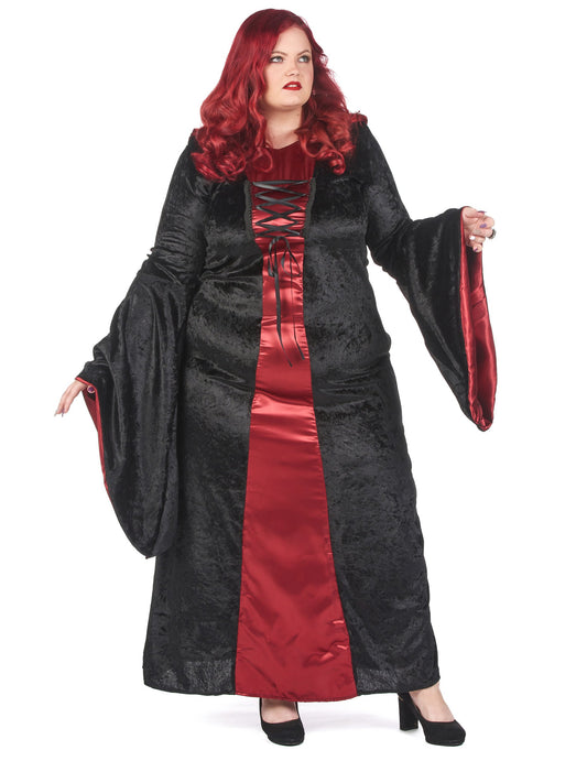 Velika kostim gotičke veličine s crvenom i crnom ženskom kapuljačom