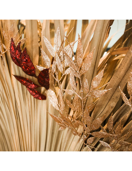 Rasprodano6 tropskih šljokicastih listova šampanjca 19 cm na stabljici