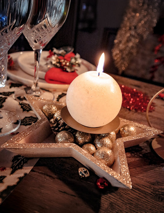 RasprodanoDrveni središnji ukras, svijećnjak u obliku zvijezde, zlatni šljokice, 24,5 cm za Božić