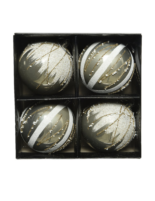 Promocija4 božićne kuglice s bijelim i zlatnim šljokicama 8 cm