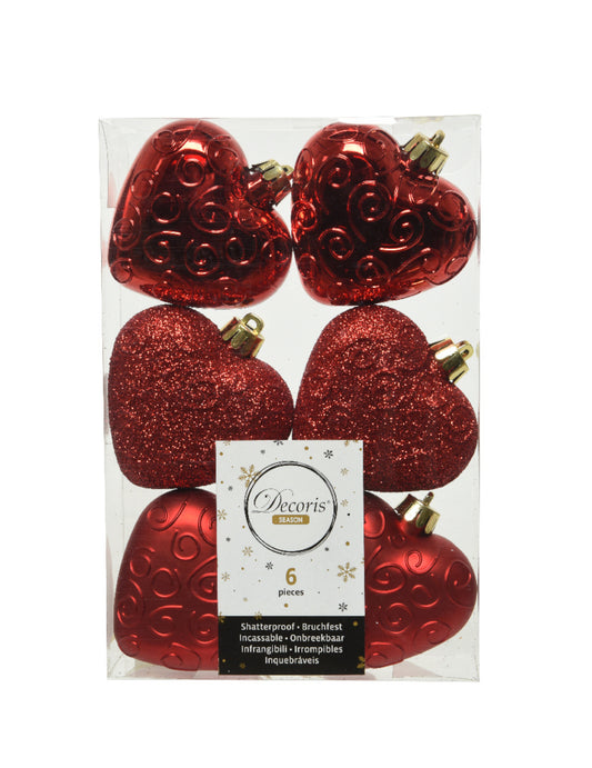 Promocija6 visećih ukrasa za božićno drvce crvena srca 7,5 cm