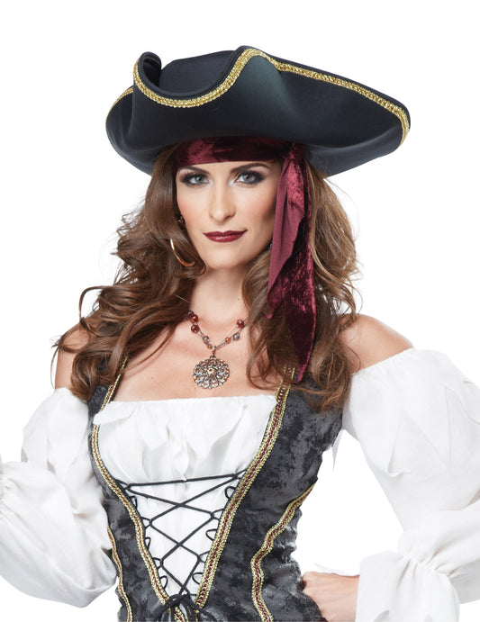 Vaš gusarski kostim je spreman, nemojte tu stati! Upotpunite svoju odjeću za zabavu kako biste svom karakteru dali kredibilitet. Gusarski nakit kao što su ogrlica i naušnice u obliku zlatnog novčića, ali i tajice s uzorkom lubanje i za kraj lijepi par gusarskih čizama za žene.